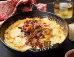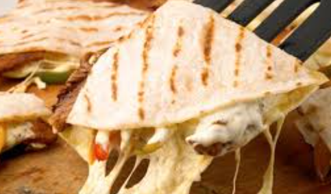 Mezcla de quesos al gratín, acompañado de tortillas de harina.