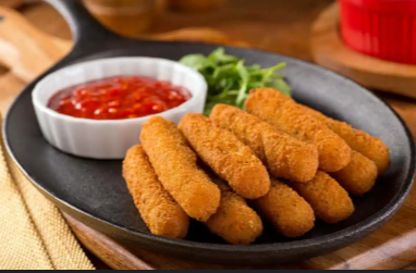 9 pzas De dedos de queso acompañados con un dip de salsa de tomate.