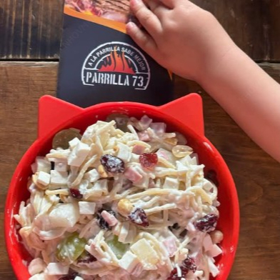 Porción de spaghetti con crema o a la mantequilla y trozos de jamón. Estos platillos vienen en paquete e incluyen: jugo para niño y una dulce sorpresa.