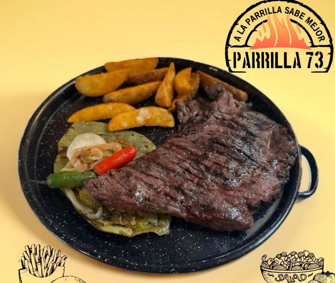Llamada también entraña, esta se marina para darle la suavidad que la caracteriza. Cocinamos al grill. Considere de 15 a 25 minutos para la preparación de estos platillos. E incluyen: cebolla asada. Chiles toreados, nopales, papas y ensalada.