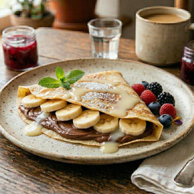 Crepa con nutella, plátano y lechera.