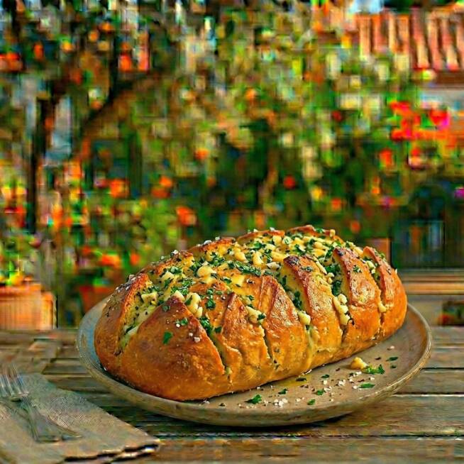 Pan de ajo dorado con perejil.