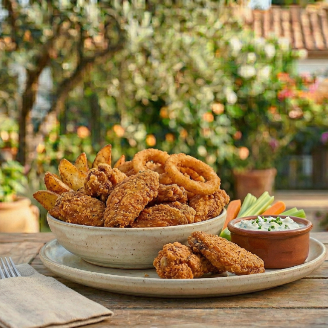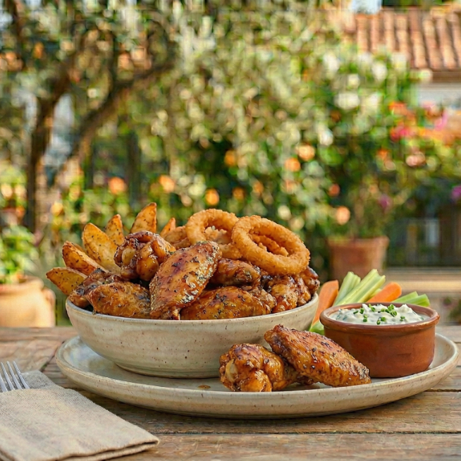 Combo de alitas de pollo crujientes.