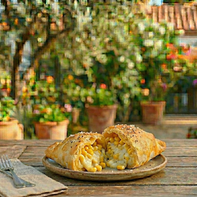 Empanada de elote dulce con queso.