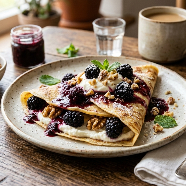 Crepa de zarzamora, philadelphia y nuez.