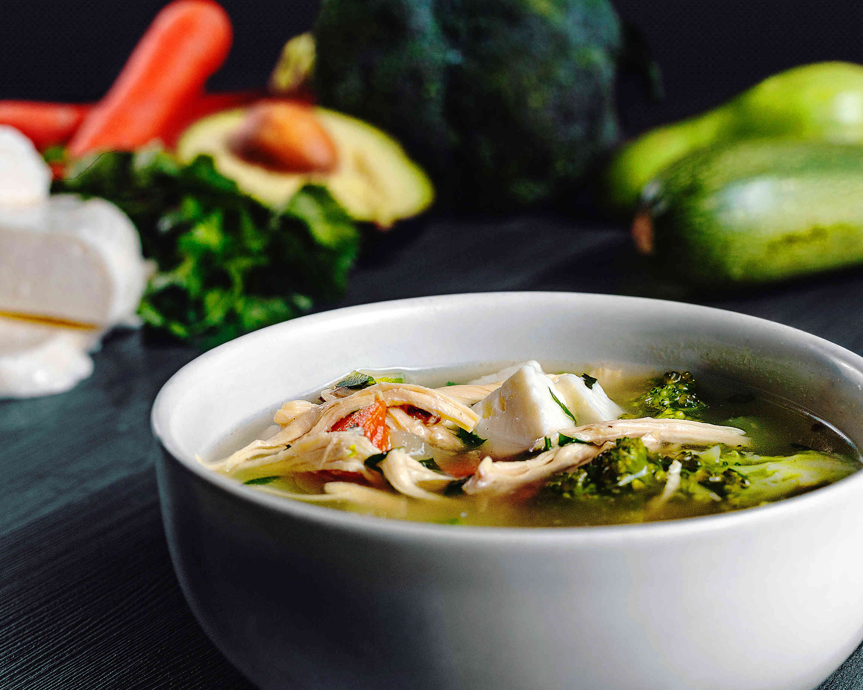 Con pollo, verduras y queso panela.