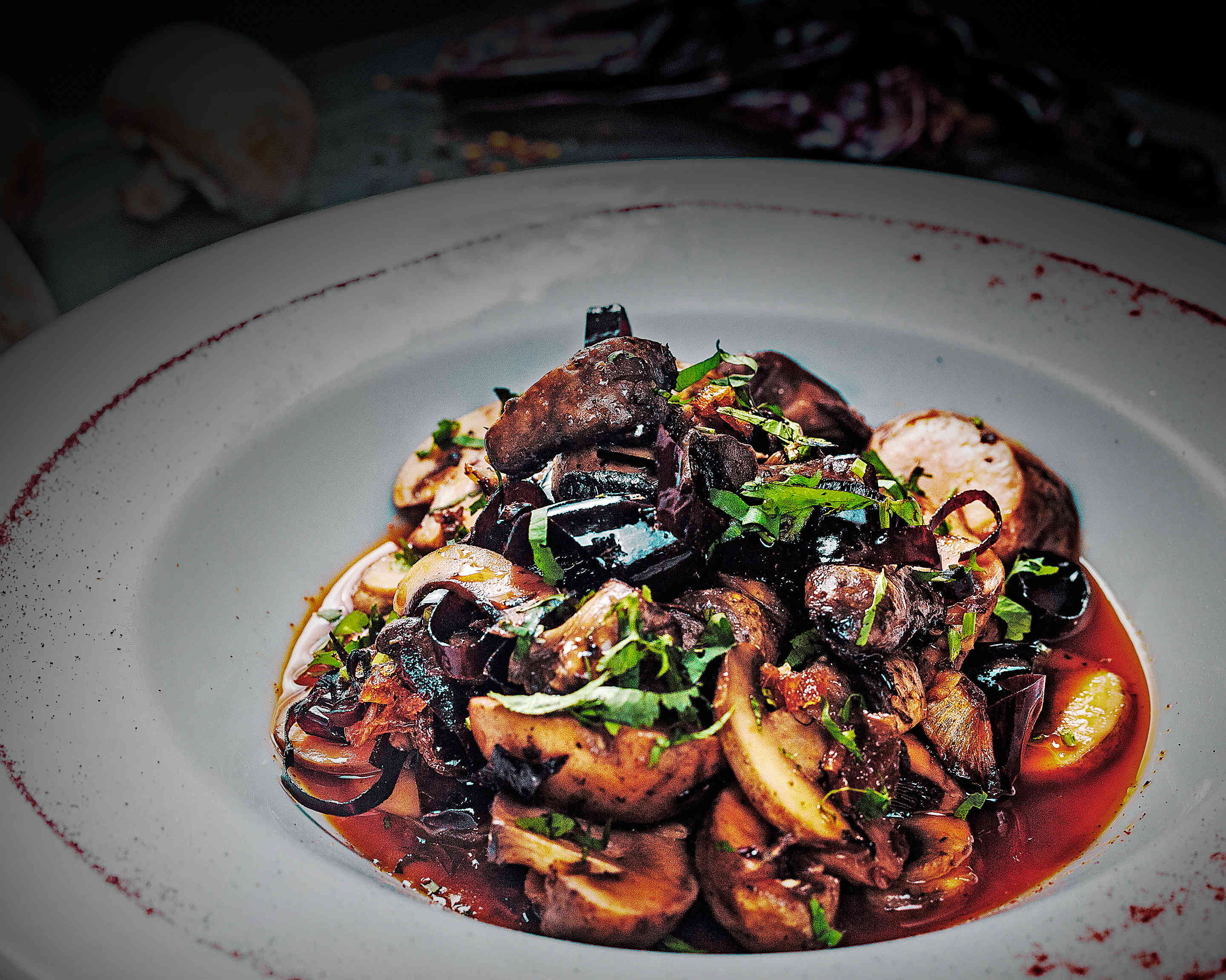 Mollejas de res a la parrilla bañadas de una exquisita salsa a base de jugo de carne, cebollín y vino blanco.