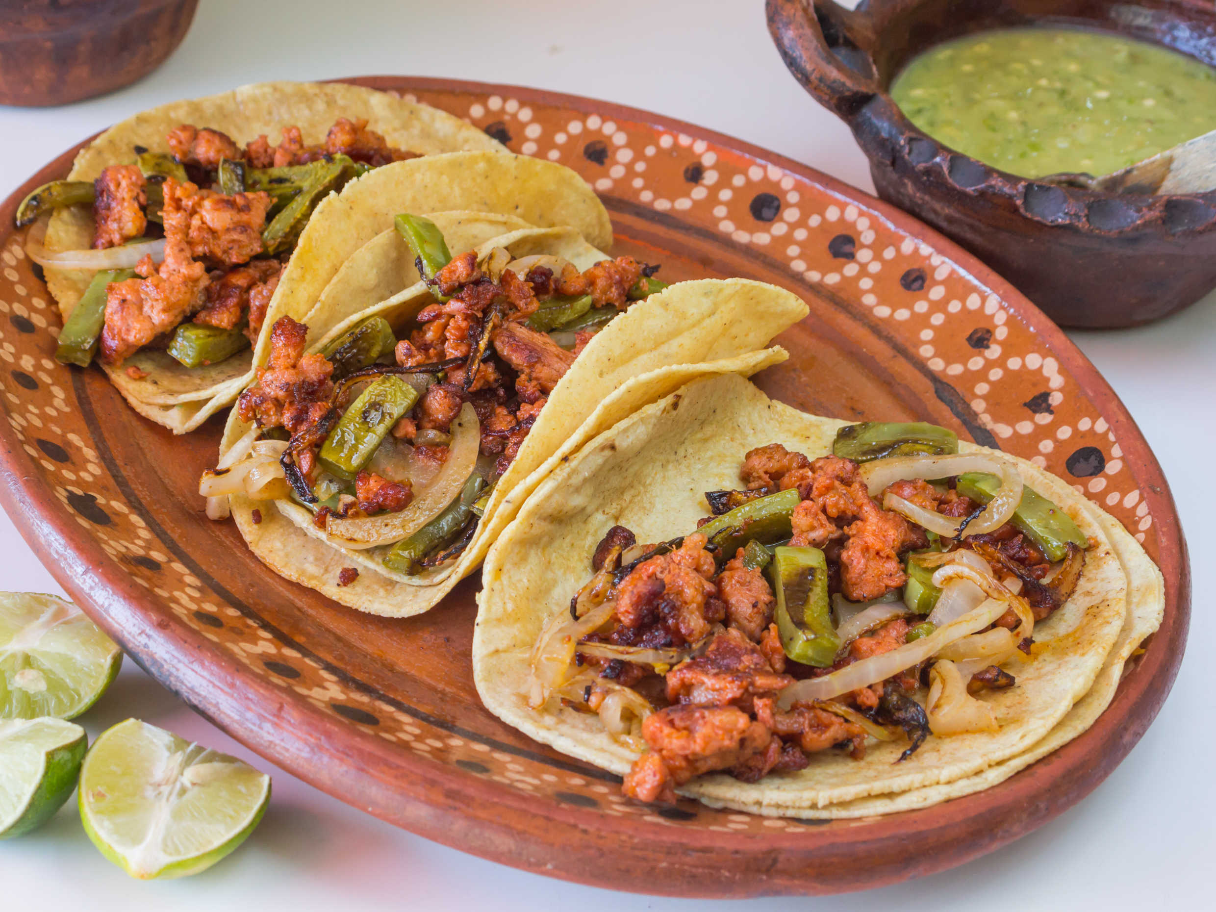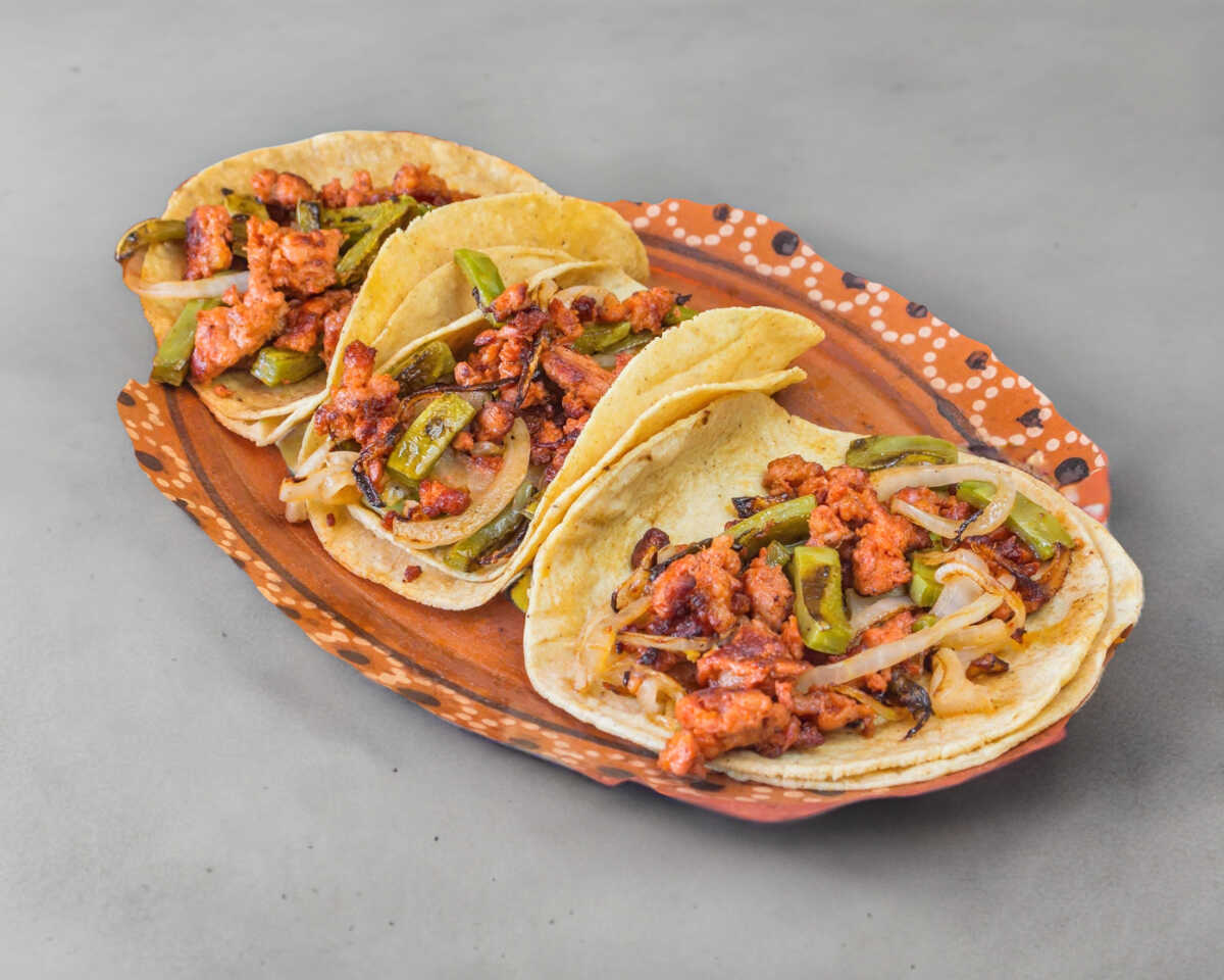 Pastor, cebolla, queso Oaxaca y aguacate.