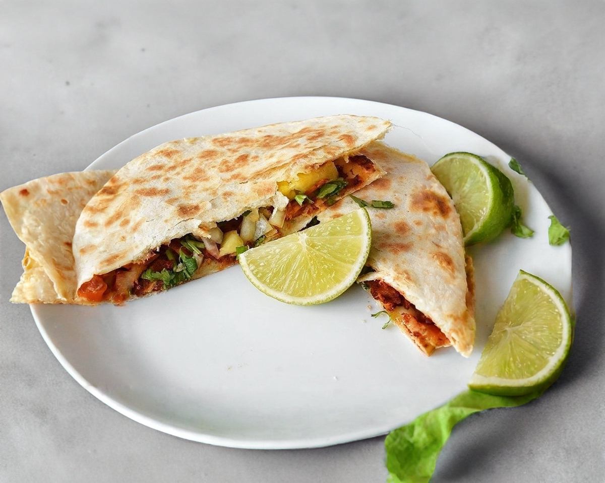 Tortilla de harina mediana, bistec, costra de queso Oaxaca, aguacate y salsa especial.
