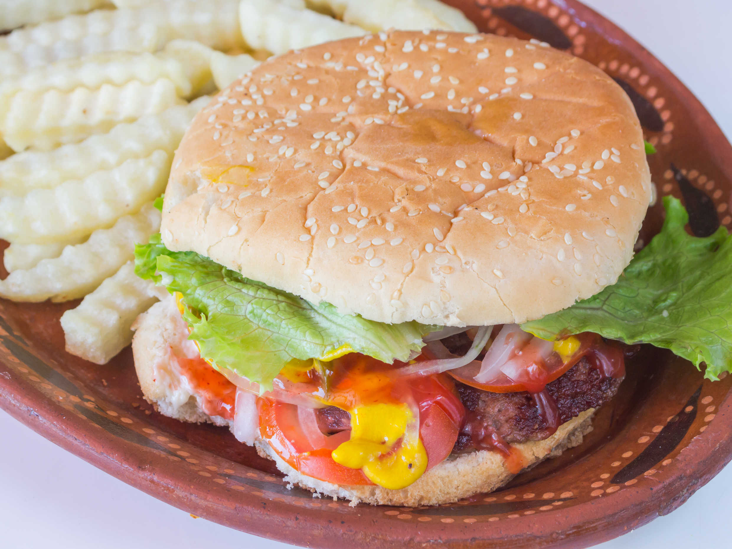 Hamburguesa sencilla, papas a la francesa y refresco coca cola de 600 ml.