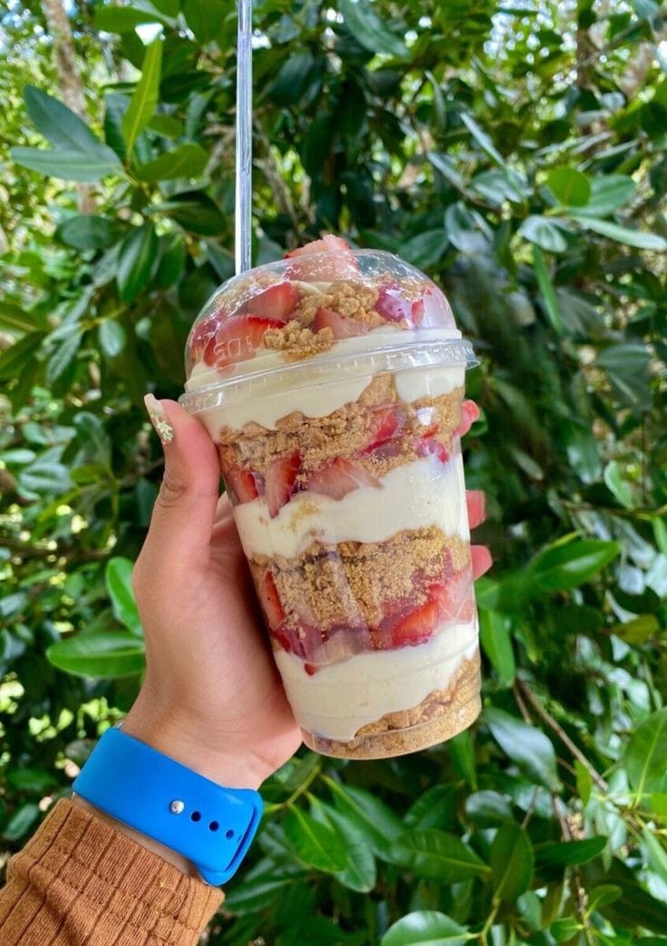 Fruta fresca a elegir con yogurt natural, miel y granola.