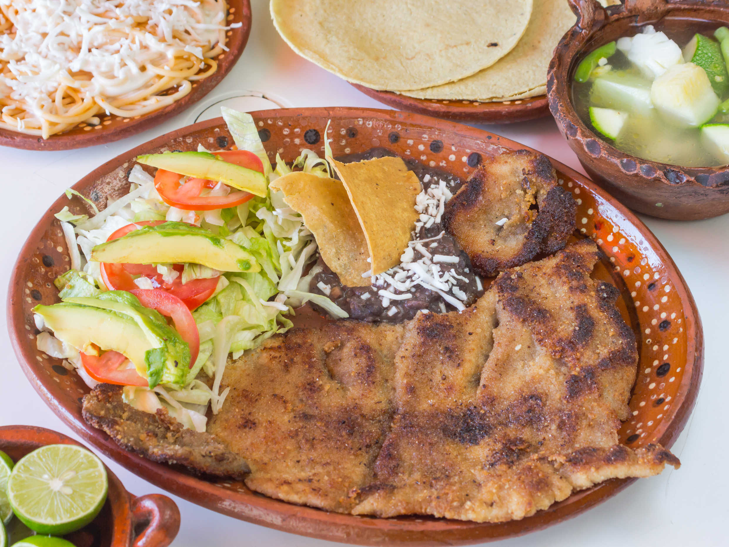 Milanesa de pollo, milanesa y queso Oaxaca.