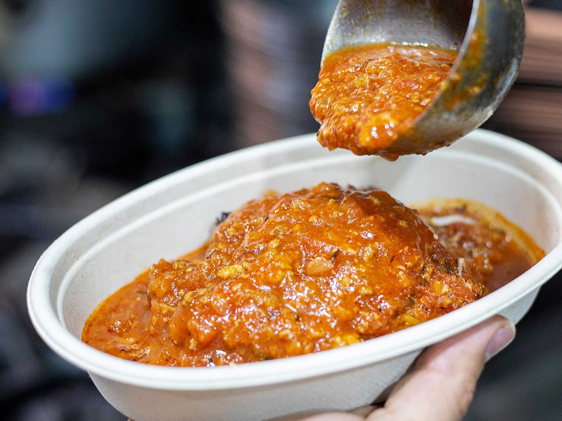 Lasagna con carne de cerdo y res molida con jitomate y especias.