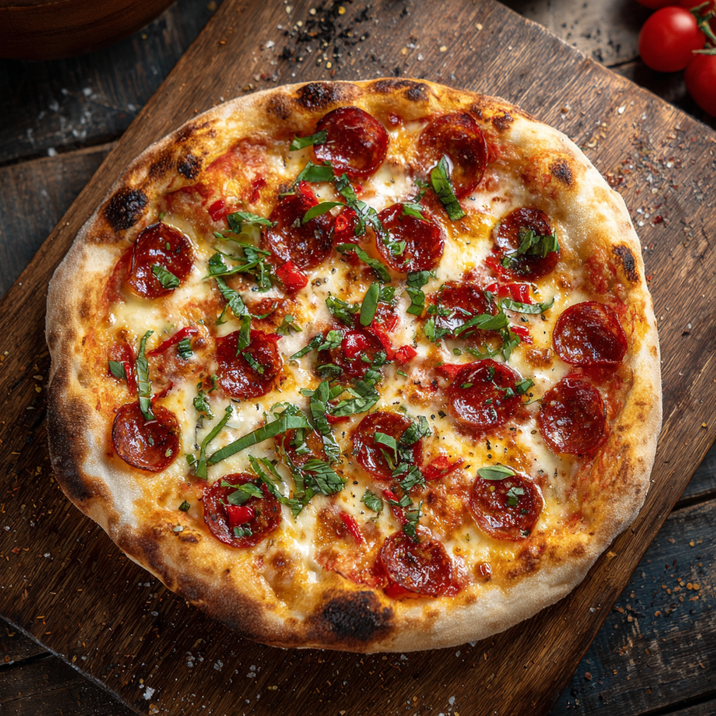 Pizza de Pepperonni con salsa pomodoro de la casa y autentico queso mozarrella