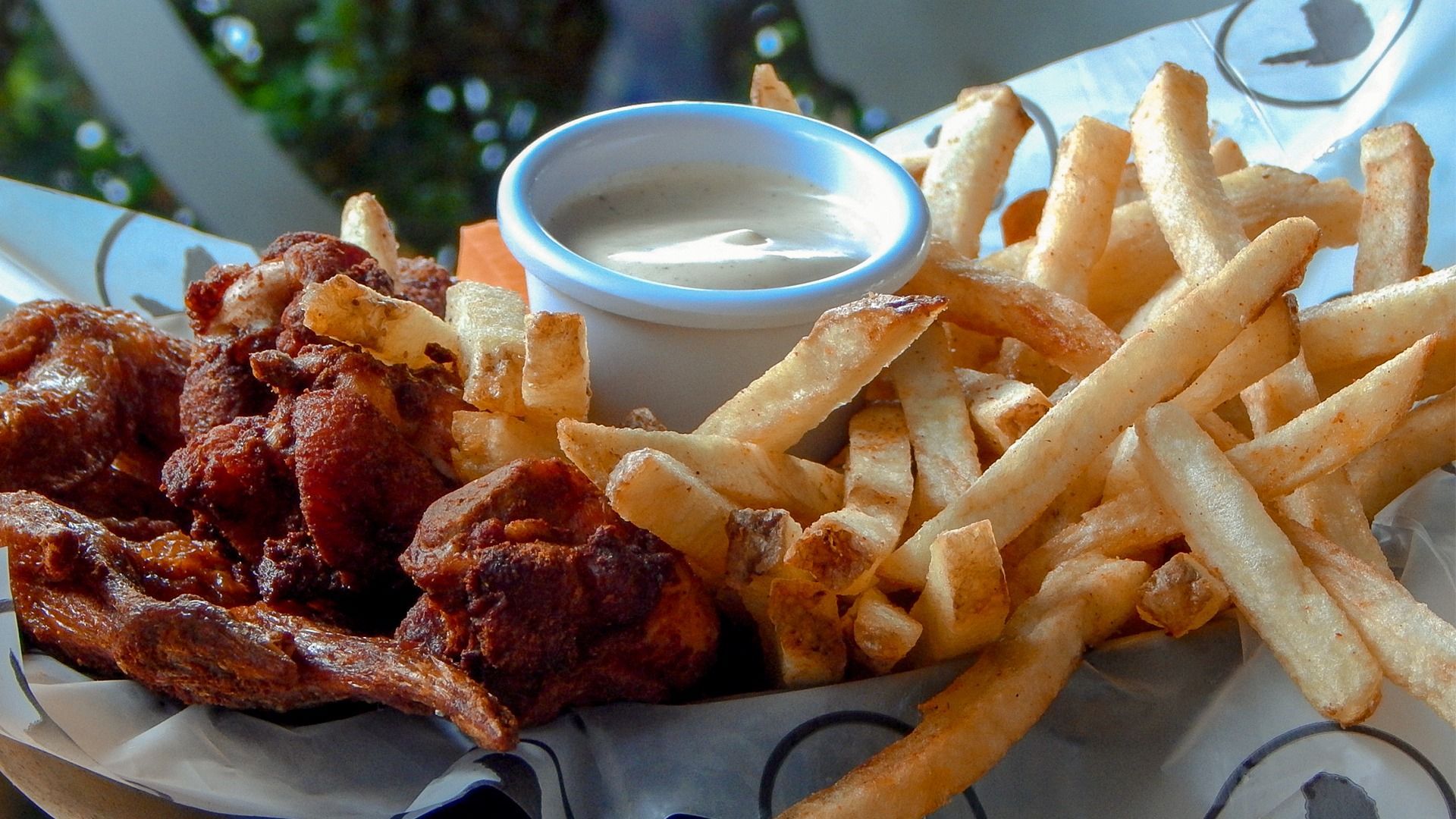 Rica orden de 8 alitas acompañadas de 70gr de papas a la francesa