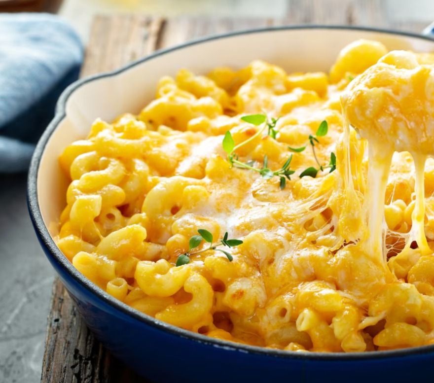 Deliciosos macarrones con queso cheddar, porción individual
