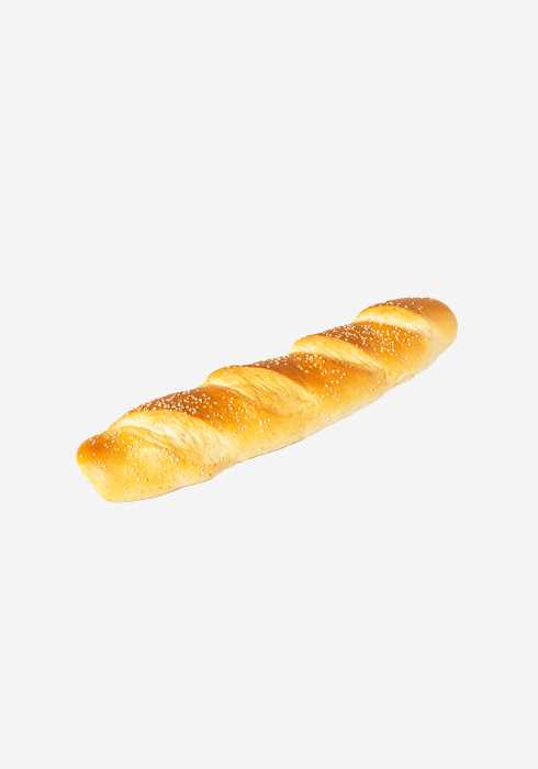 Pan danés tipo hojaldrado con suave sabor a mantequilla. En forma de cuerno y barnizado con huevo.