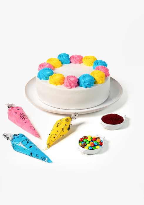 Pan sabor vainilla, relleno con trozos de fresas, bañado en jarabe natural. El cual incluye: 3 mangas con crema de colores, una galleta y 2 topping