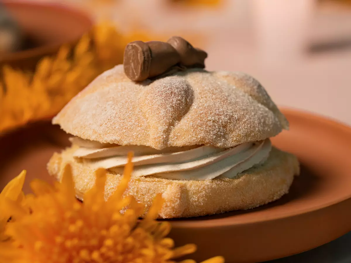 Masa estilo brioche, cubierta con una galleta fina sabor chocolate.