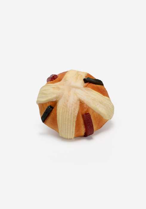 Masa estilo brioche, cubierta con una galleta fina sabor chocolate.