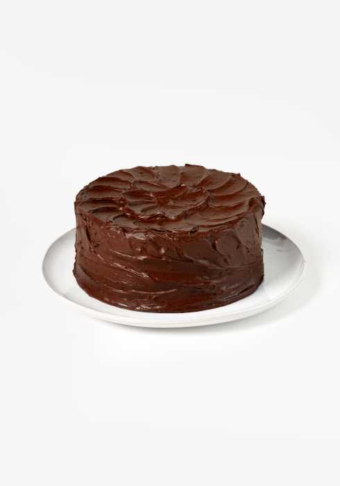 Pastel hecho a base de panqué de chocolate con relleno y decorado de ganache de chocolate.