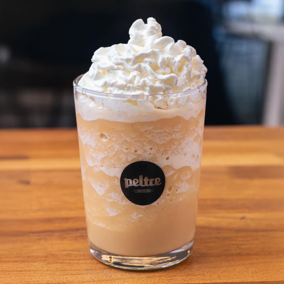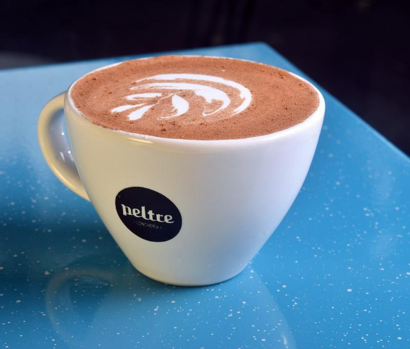 Mezcla de chocolate de origen mexicano en leche cremada caliente y muy espumosa.