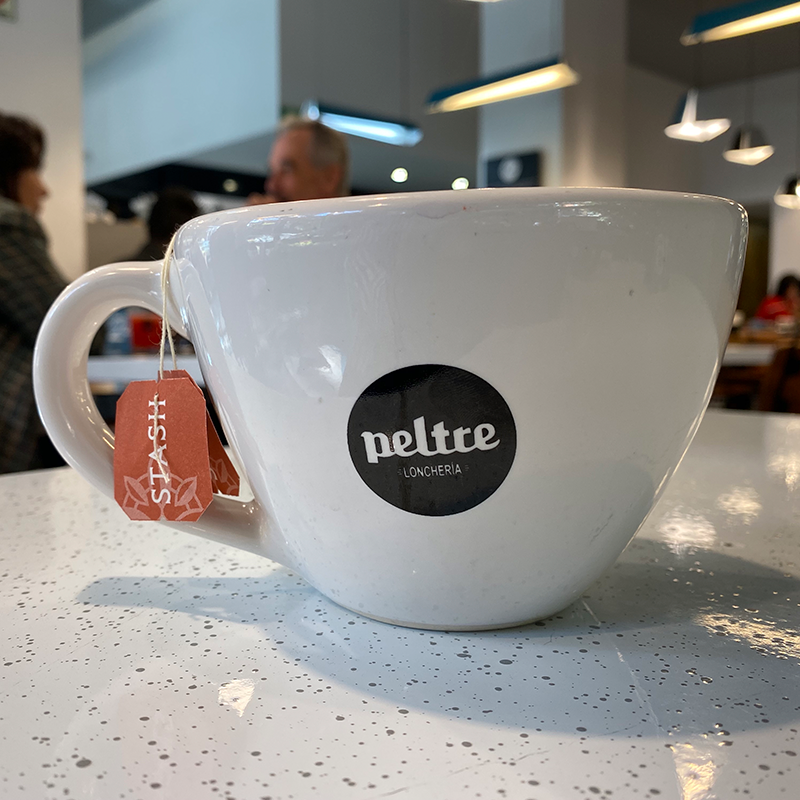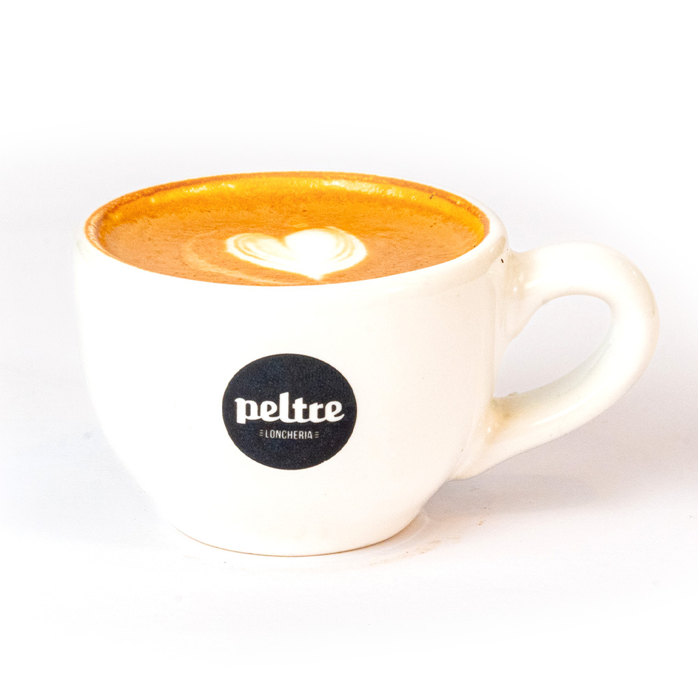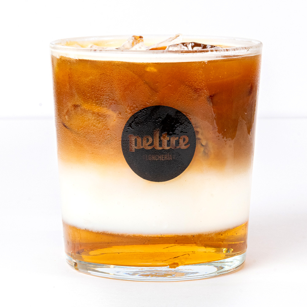 Extracción de la mezcla de café Peltre, con un toque de leche.