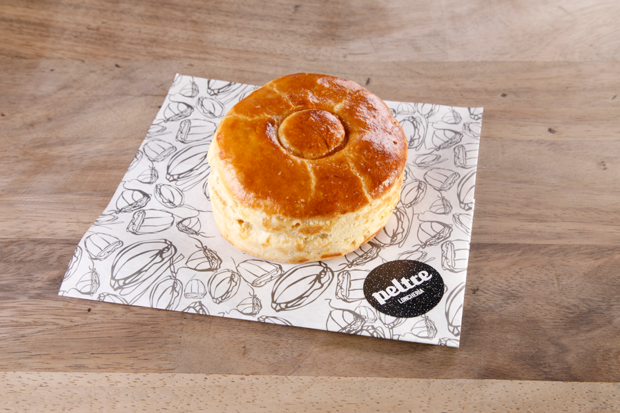 Elaborado a base de harina de trigo, huevo, polvo para hornear, levadura, sal, azúcar, mantequilla y leche.