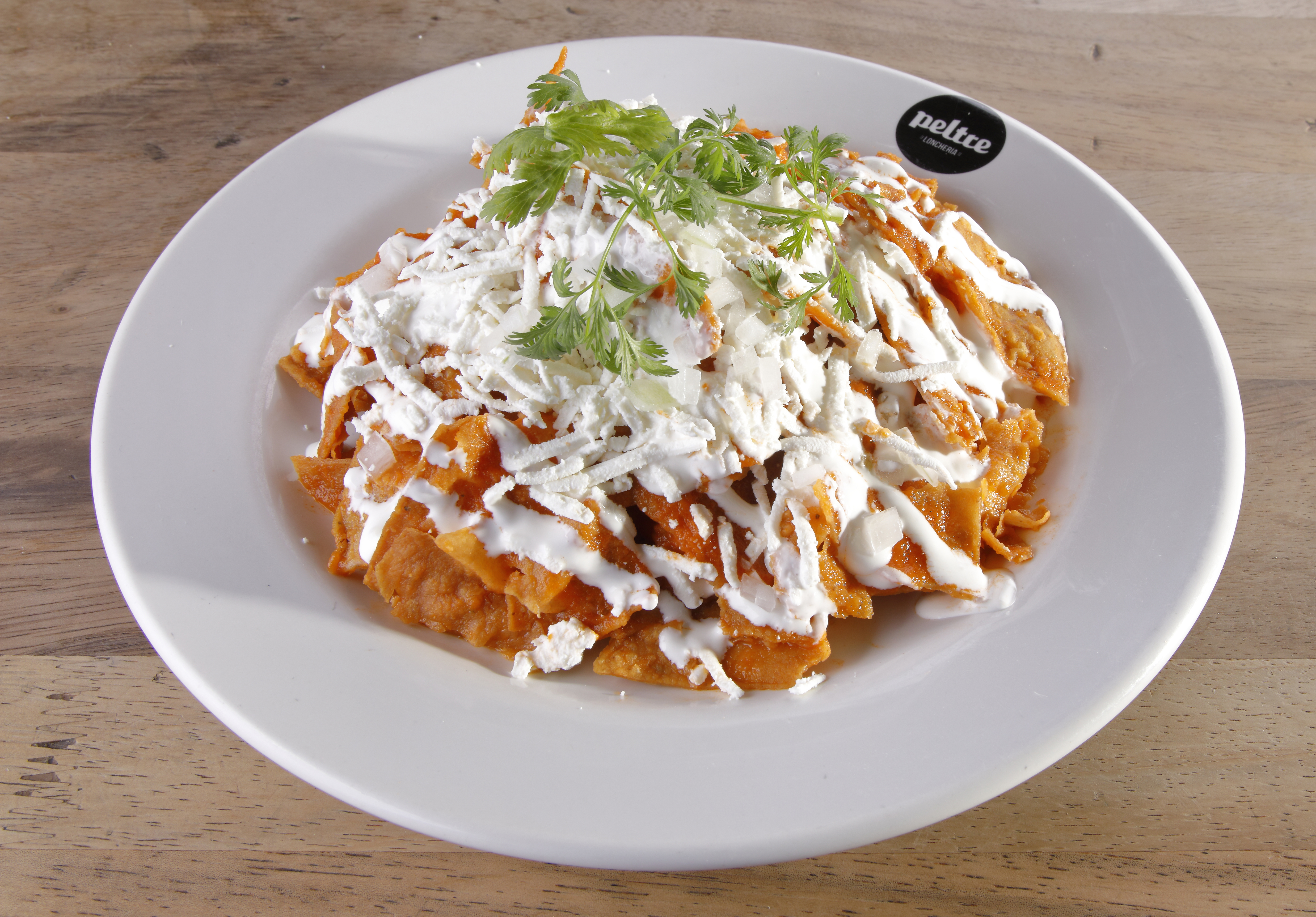 600 g. Chilaquiles con la salsa de su elección (verde, roja o divorciados) con crema, queso fresco, cilantro y cebolla.