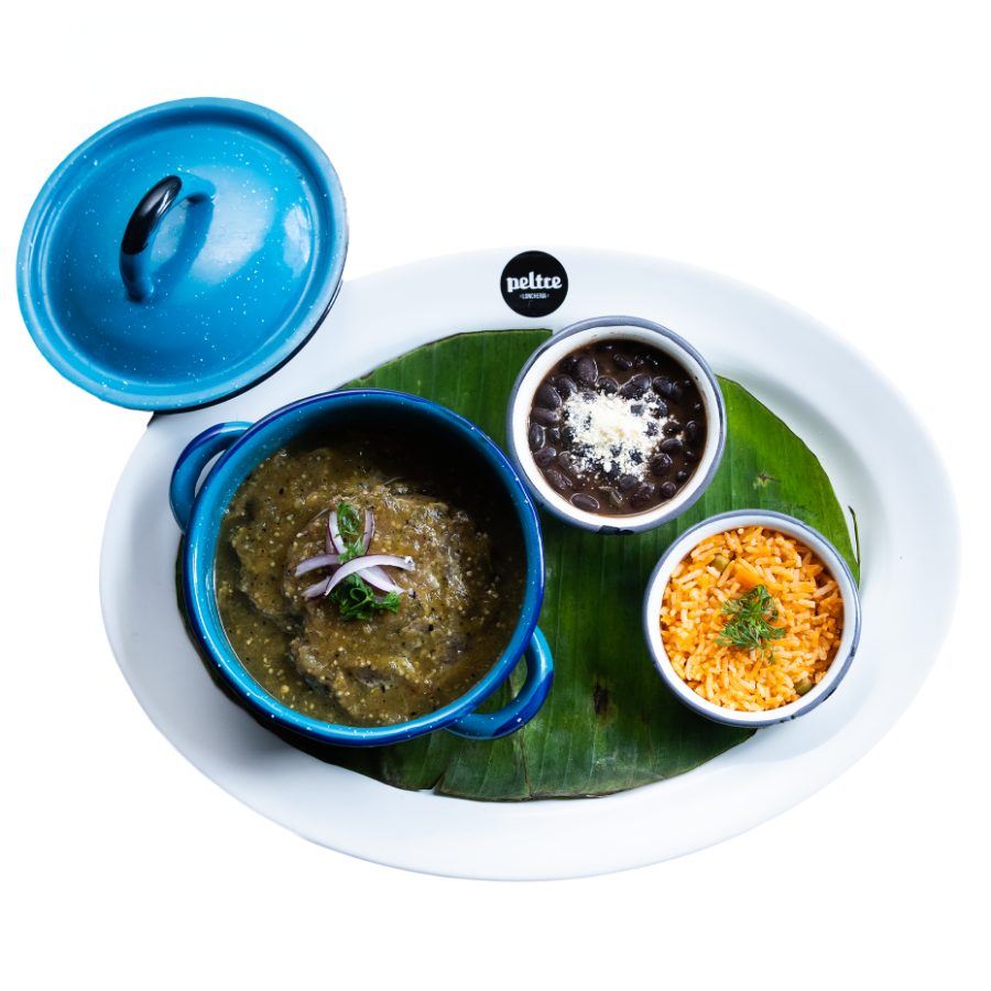 200 g. Tortitas suaves de carne en salsa verde tatemada, cebolla morada y cilantro. Acompañada con arroz, frijoles de la olla y tortillas de maíz.