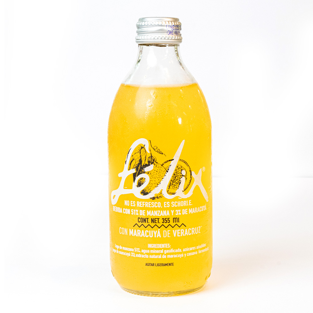 Vol. 355 ml. Bebida gasificada, con jugo de frutas, extractos, endulzantes naturales y fibras vegetales. Baja en calorías, con certificado vegano y sin conservadores.