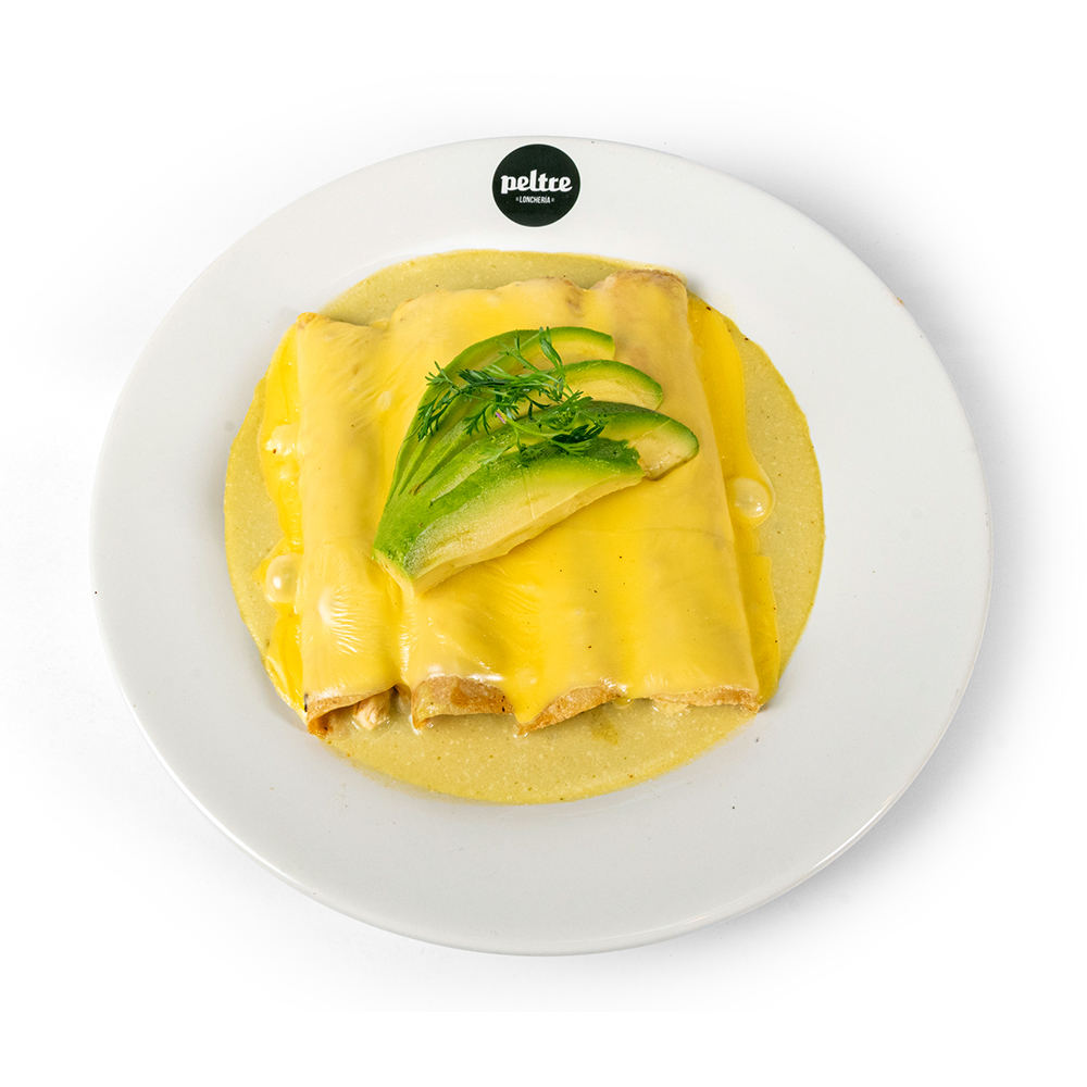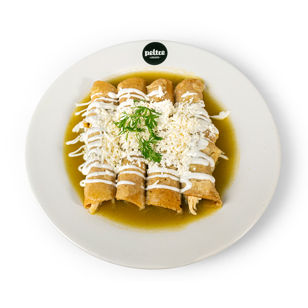 390 g. Cuatro enchiladas rellenas a tu elección (pollo, queso panela o huevo), bañadas de salsa verde, coronadas con cebolla, crema, queso fresco, aguacate y cilantro.