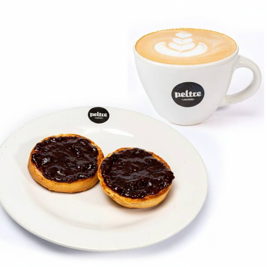 1 capuccino mediano 12Oz + 1 Bisquet con Mermelada