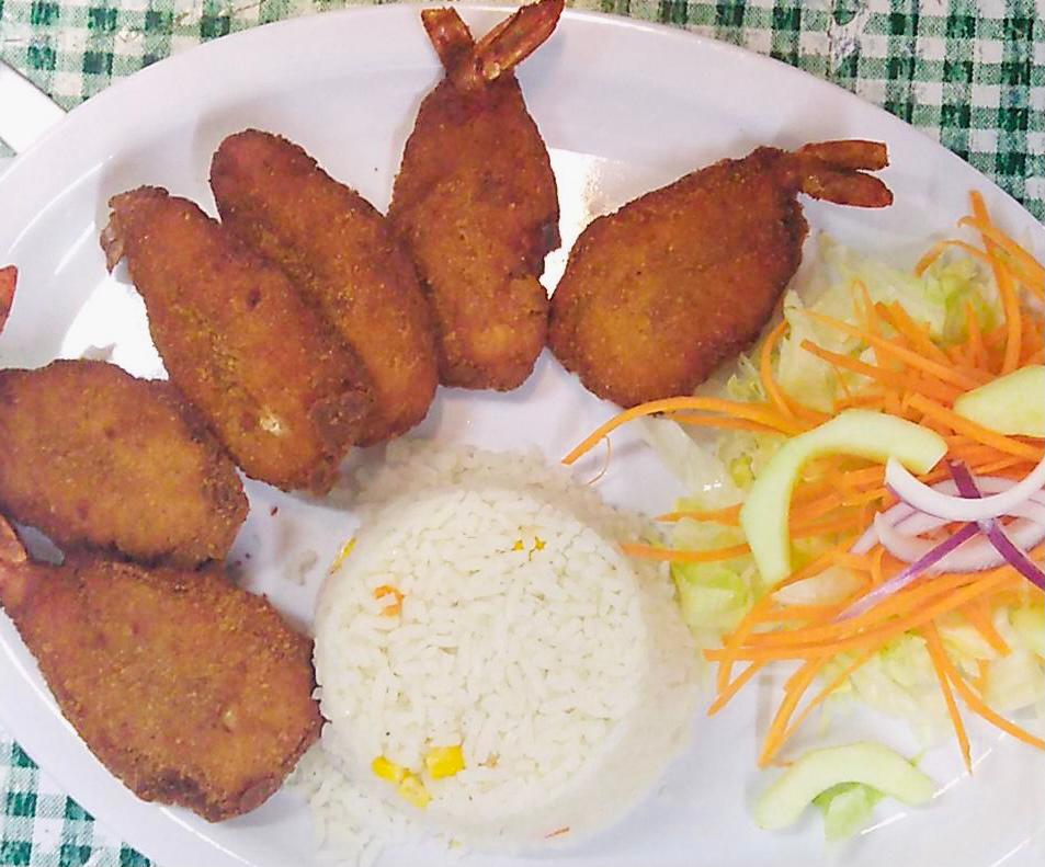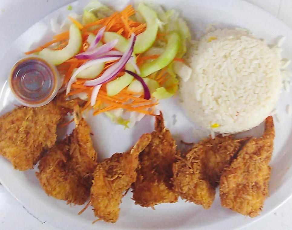 Acompañados con arroz, ensalada y salsa tamarindo.