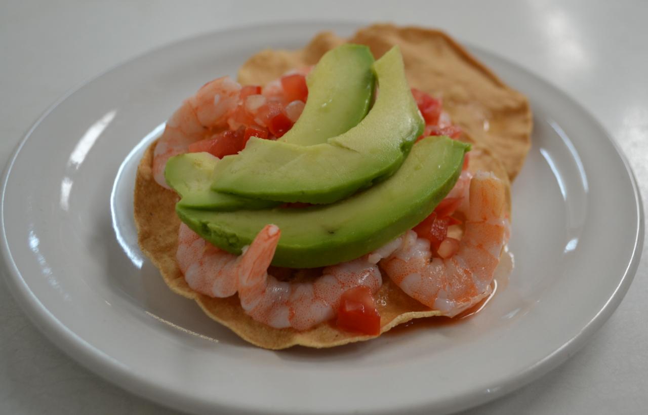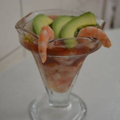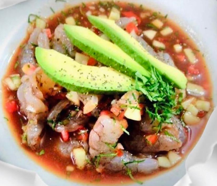 Camarón curtido con limón acompañado de aguacate, jitomate, cebolla morada, pepino, cilantro y nuestra salsa especial.