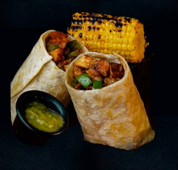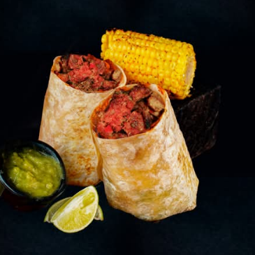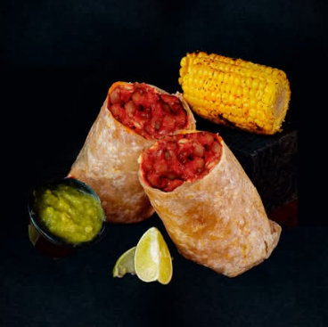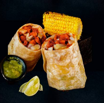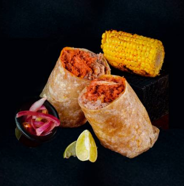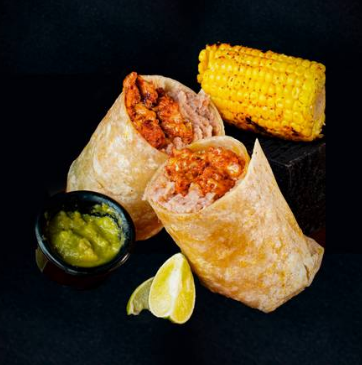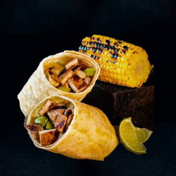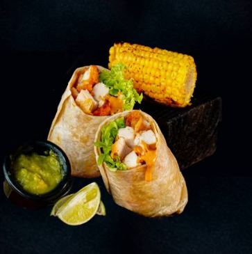 Tortilla de harina de 35cm. con 150g de pechuga crunch, lechuga y aderezo de mayonesa. Acompañado de 1/2pz de elote, salsa mayonesa chipotle y limón.