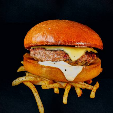 200g de carne para hamburguesa de res, queso gouda, aderezada con mayonesa en pan artesanal. Incluye 125g de papas a la francesa.