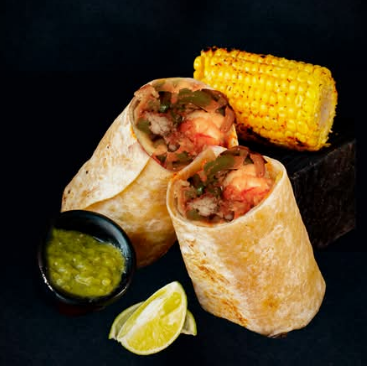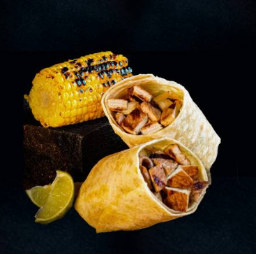 Tortilla de harina de 35cm. con 150g de pechuga crunch, lechuga y aderezo de mayonesa. Acompañado de 1/2pz de elote, salsa mayonesa chipotle y limón.