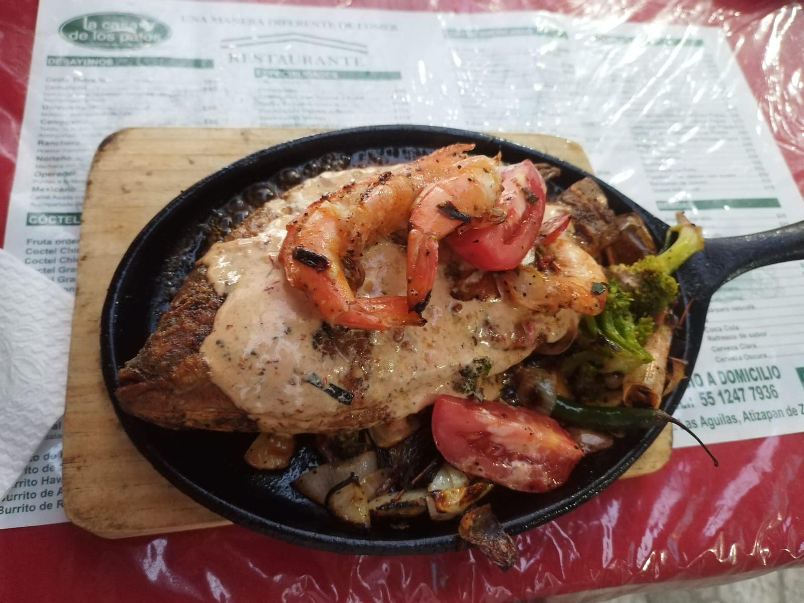 Con crema de chipotle estilo juchitán, arroz y ensalada.