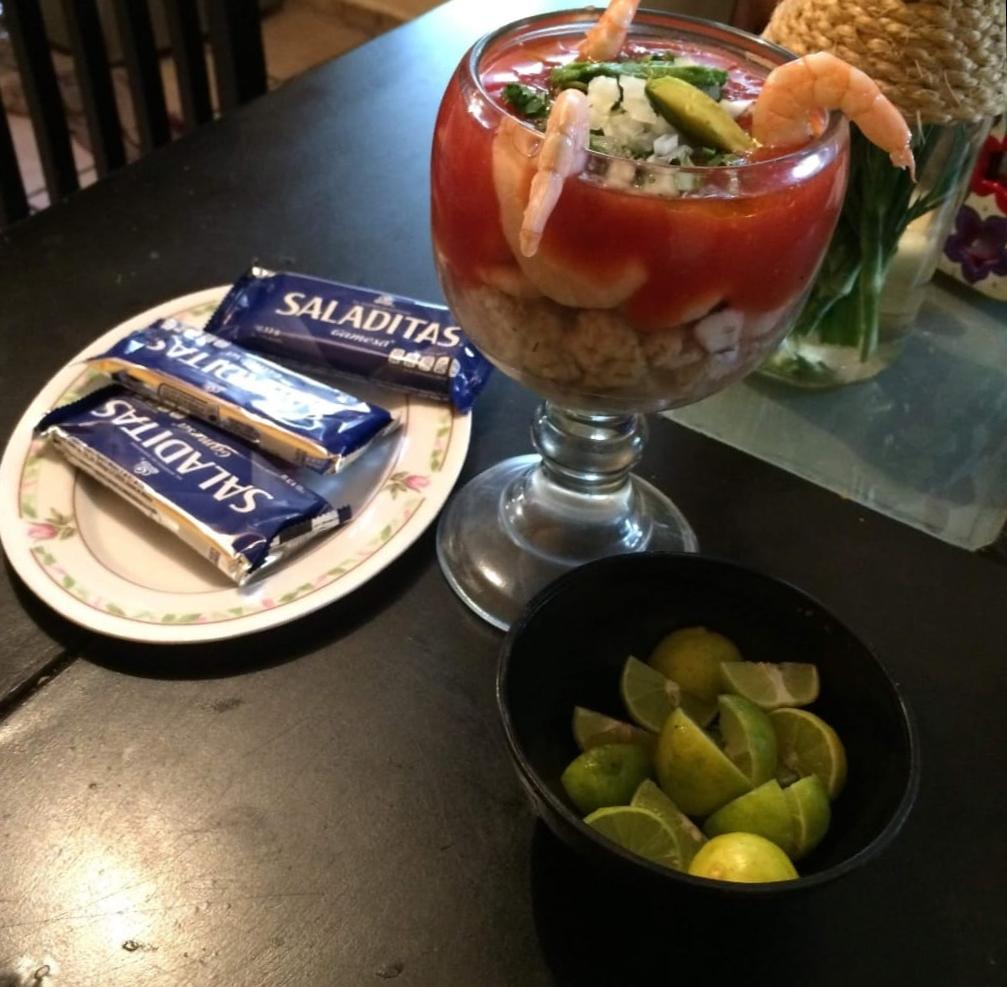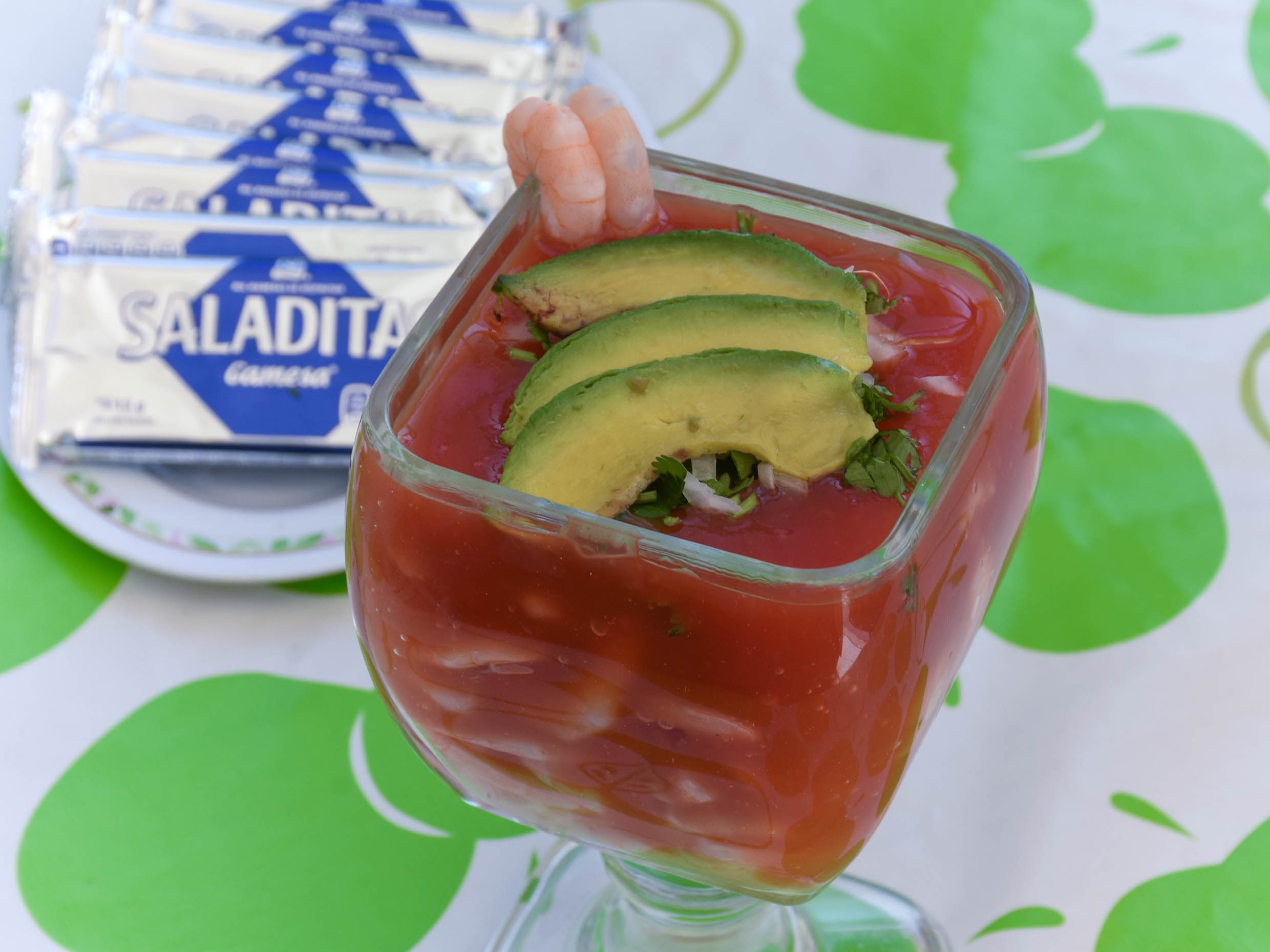 Ostión,camaron y pulpo. Chico en vaso de 296 ml; Grande en vaso de 473 ml; Bola en vaso de 946 ml