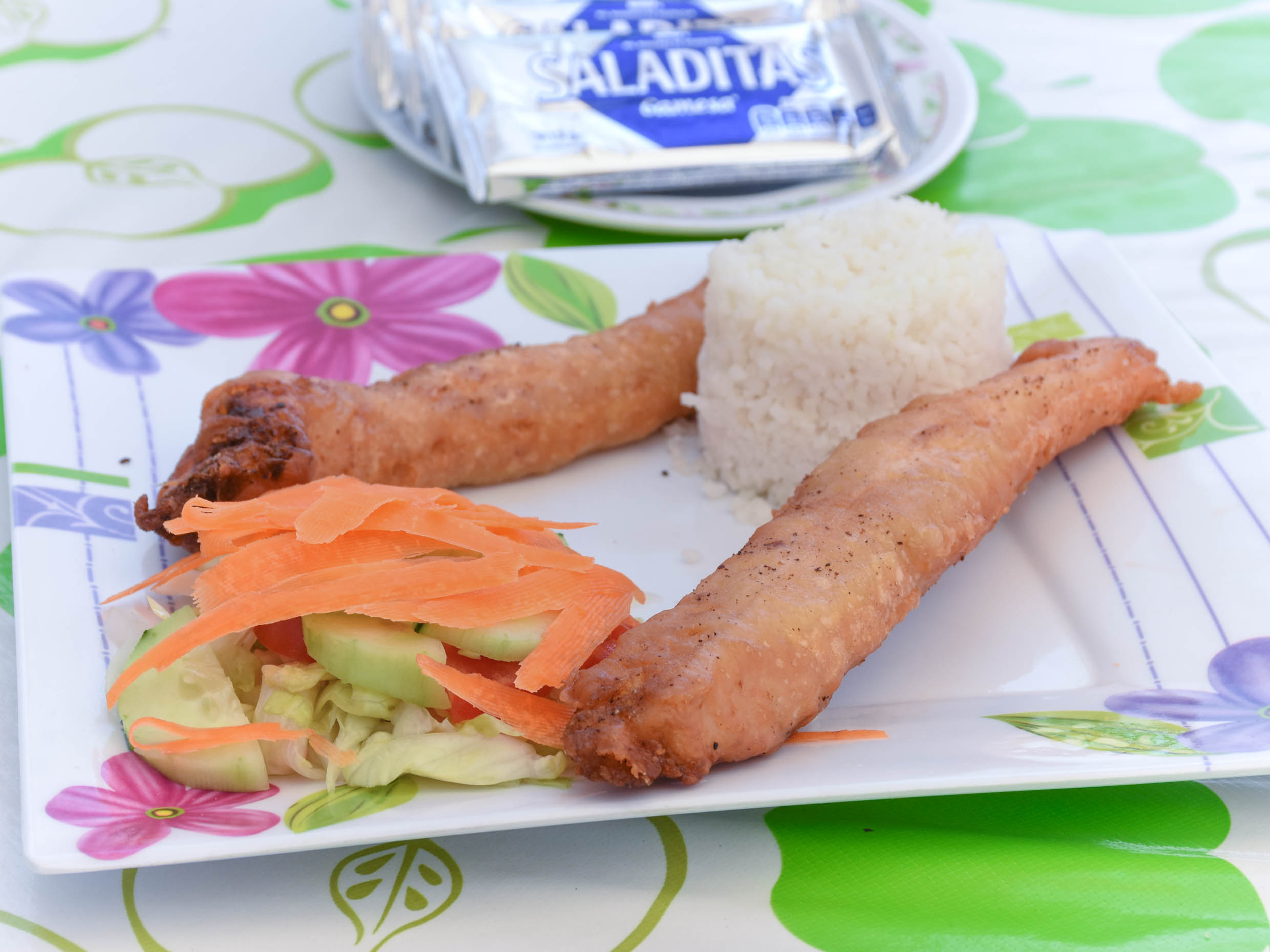 2 filetitos con cilantro, cebolla, mayonesa y aguacate.