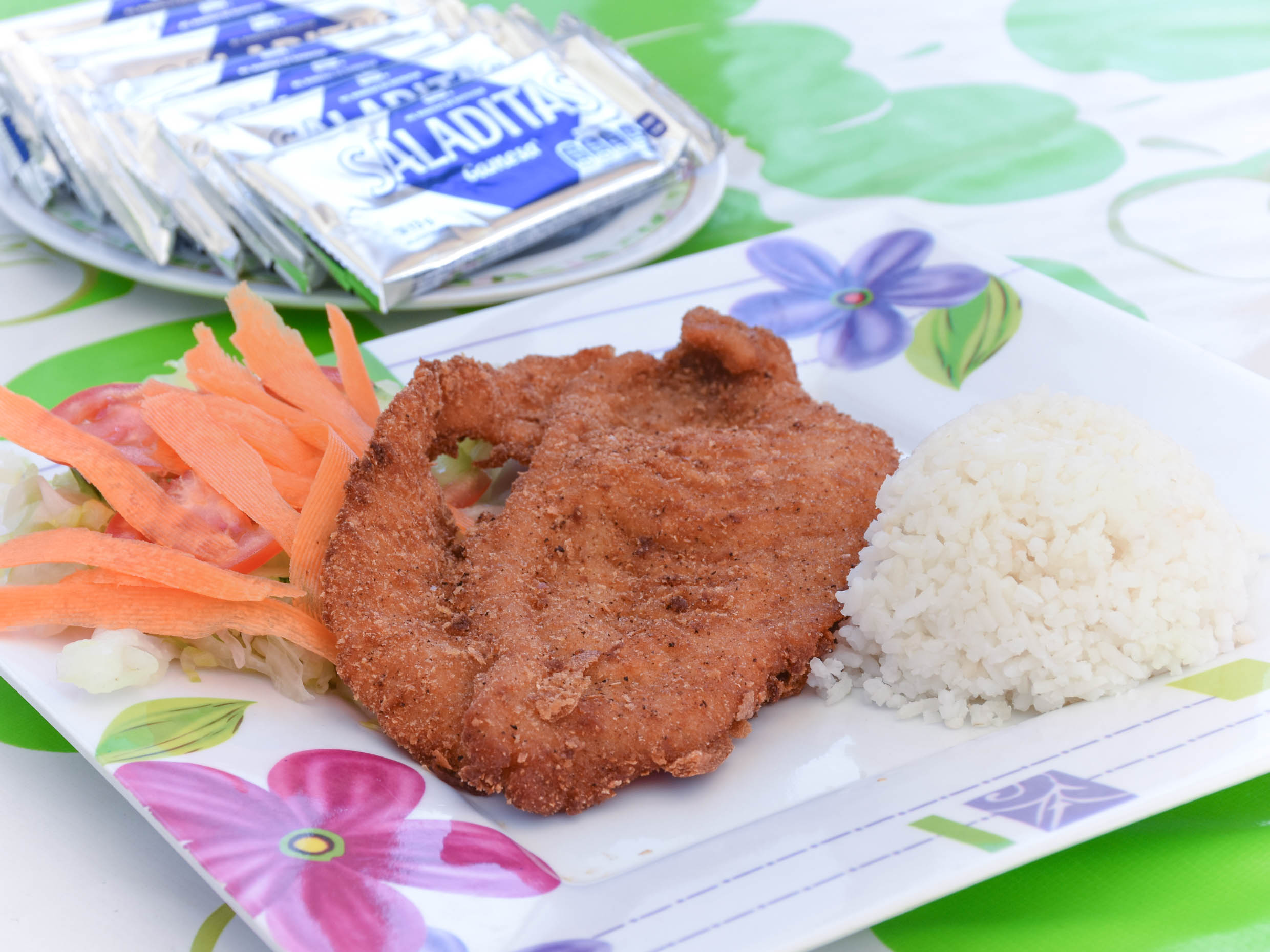 1 filete empanizado con arroz y ensalada (incluye un bolillo)