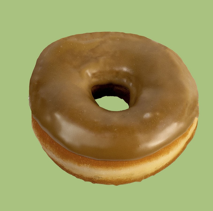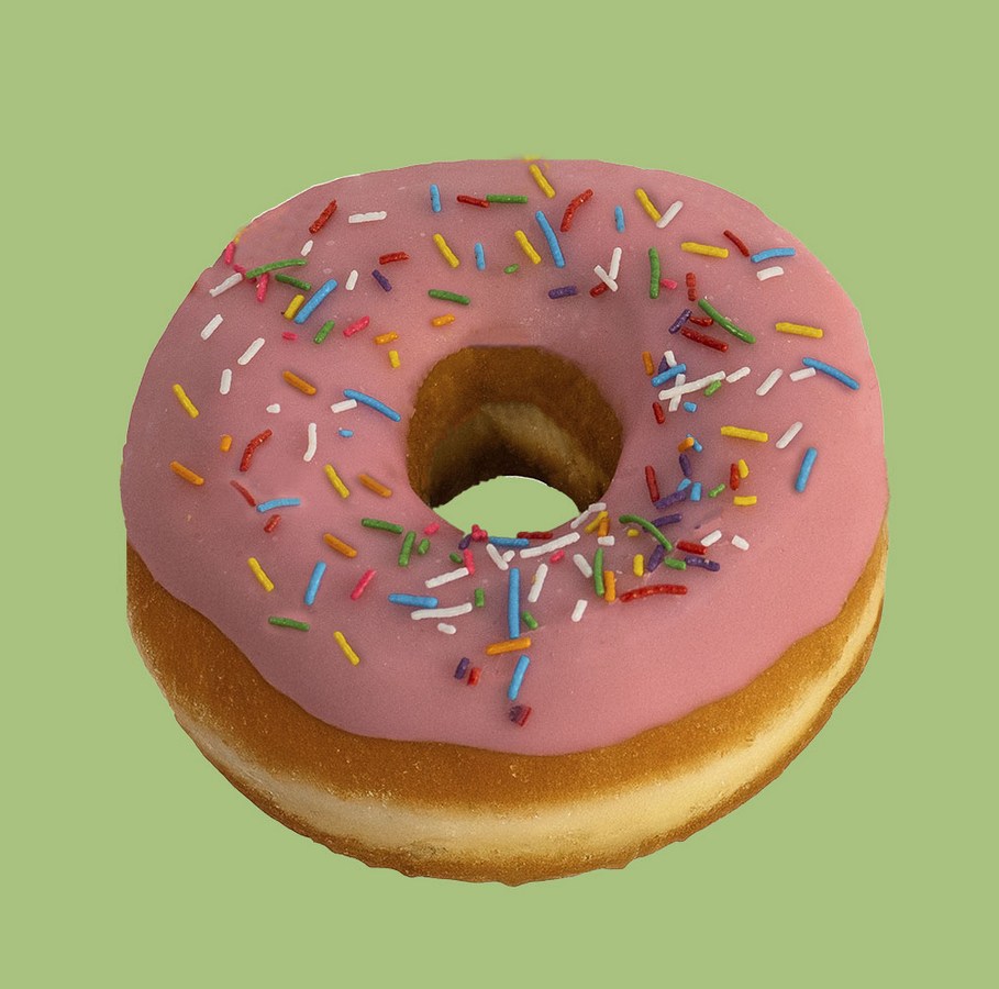 Dona clásica con glaseado sabor fresa y chispas de colores.