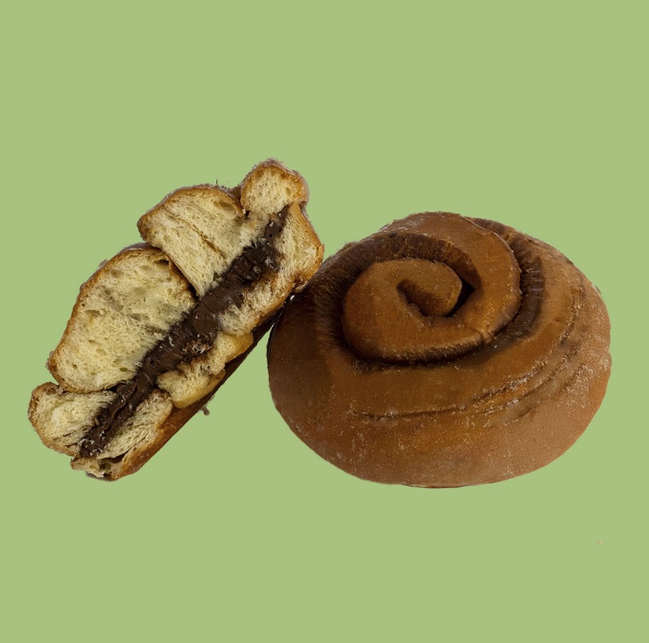 Rol relleno de chocolate y crema de avellana, glaseado.