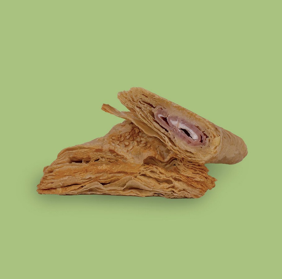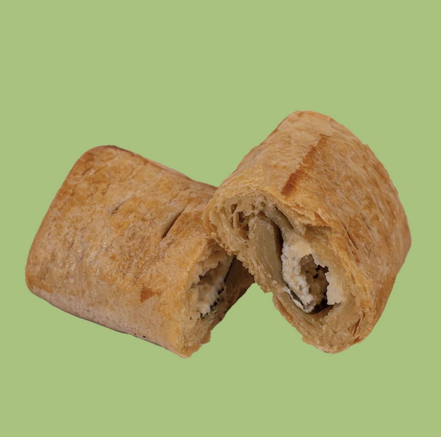 Rollo de hojaldre relleno de espinacas con queso crema.