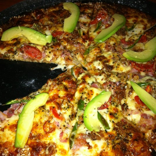 Champiñón, elote, pimiento verde, aceitunas y cebolla.