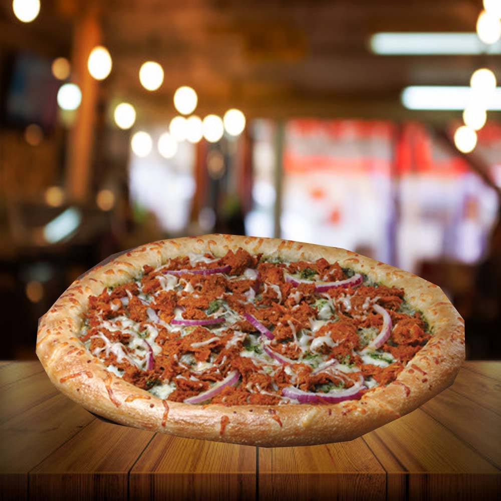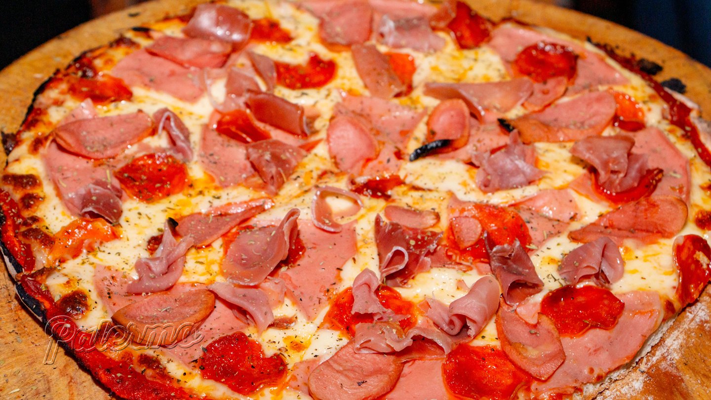 Jamón, salami, chorizo, champiñón, pimiento verde y cebolla.