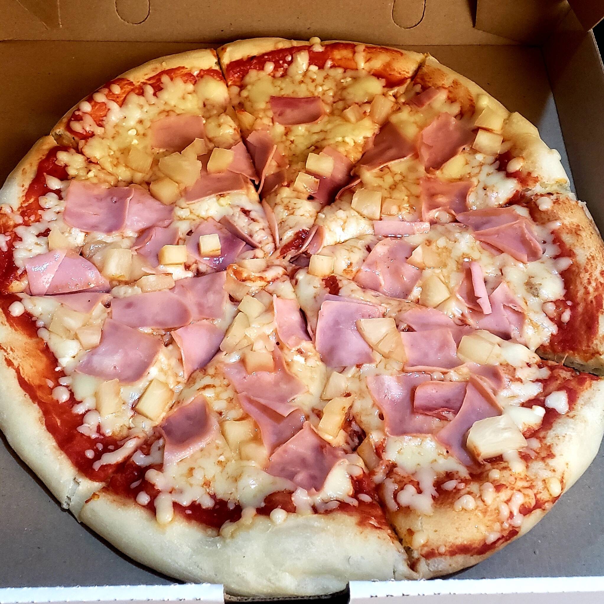 Pizza 8 capas de queso Mozzarela salsa de tomate piña,jamon