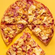 Pizza con tamaño a elegir, jamón, tocino y durazno.