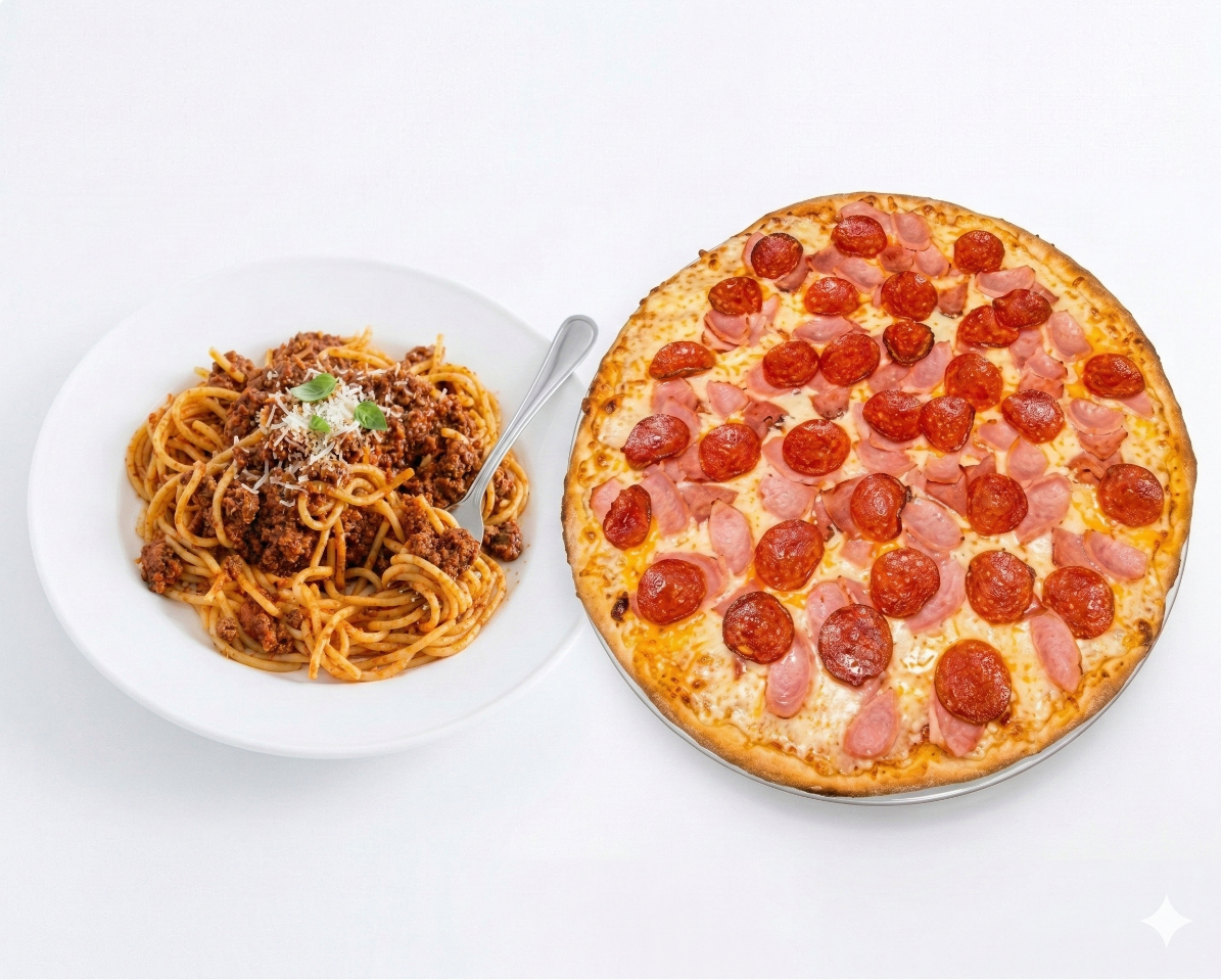 1 Espaguett a la Mexicana o Boloñesa y 1 Pizza Grande a Elegir